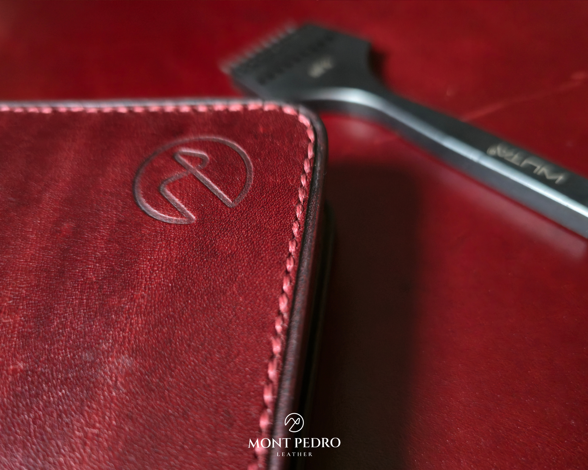 Every piece is meticulously hand-stitched with crimson red waxed thread for structural integrity and visual continuity. No machine shortcuts. No cosmetic stitching. Each saddle stitch reinforces durability while maintaining symmetry across every panel.